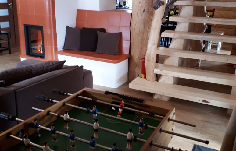 Zrub Chopok Vám ponúka celoročné ubytovanie v malebnom prostredí Nízkych Tatier. Na poschodí sa nachádzajú štyri samostatné trojlôžkové izby a toaleta s umývadlom. V každej izbe je jedna manželská posteľ a jedno samostatné lôžko. K vybaveniu izieb patrí drevený nábytok, antialergické periny, kvalitné posteľné prádlo a osušky. Chutné jedlo si môžete pripraviť v kompletne zariadenej kuchyni s chladničkou, mikrovlnkou, rýchlovarnou kanvicou, hriankovačom, elektrickou rúrou so sklokeramickou platňou a potrebným kuchynským riadom. Pri umývaní riadu Vám dobre poslúži aj umývačka riadu. K dispozícii je kávovar s kvalitnou kávou, s ktorou si určite spríjemníte čas pri spoločenských hrách. Spoločenská miestnosť má krbovú pec, Mini Hifi vežu, televízor a stolný futbal. Kúpeľňa je vybavená sprchovacím kútom, toaletou, sušičom na vlasy, mydlom a uterákmi. Kúrenie v zrube je temperované na určitú teplotu – ovládané elektricky. Kúrenie je hlavne drevom v krbovej peci v spoločenskej miestnosti. V celom zrube je free WiFi.