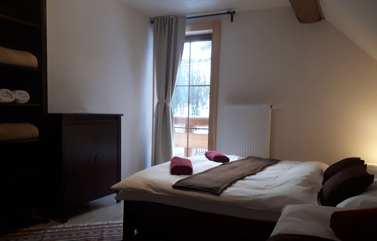 Kapacita 12 osôb. 4 izby - v každej izbe 1x manželská posteľ + 1 samostatné lôžko.